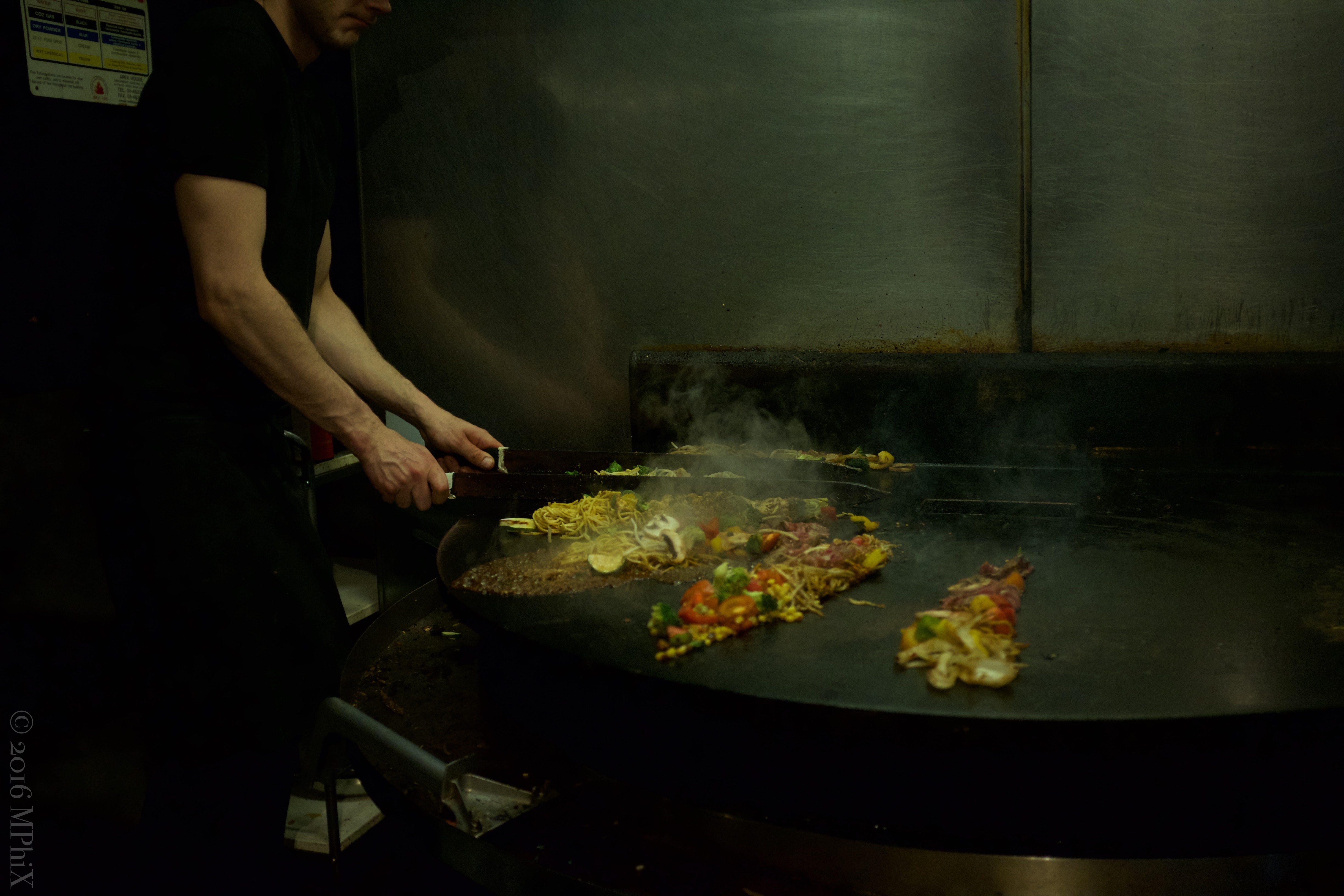 I snuck this shot in as me and my Dad waited for our food. It was fun watching the guy work, very skilful he was with those blades of his!